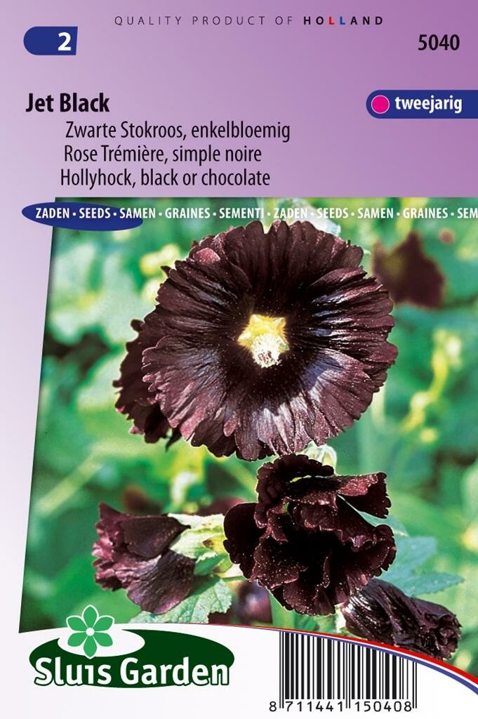 Stokroos Jet Black: Elegante donkere schoonheid voor je tuin. Alcea rosea stokroos zaden Jet Black van Sluis Garden is een bijzondere tweejarige stokroos die opvalt door zijn diep bruinzwarte, satijnachtige bloemen. Deze elegante plant vormt lange bloemstengels met talrijke enkele bloemen die een dramatisch accent in je tuin vormen. De stokroos heeft een luchtige, nonchalante uitstraling en wordt hoog maar behoudt zijn sierlijke karakter, wat hem perfect maakt voor achtergronden in borders of als blikvanger langs muren en schuttingen.