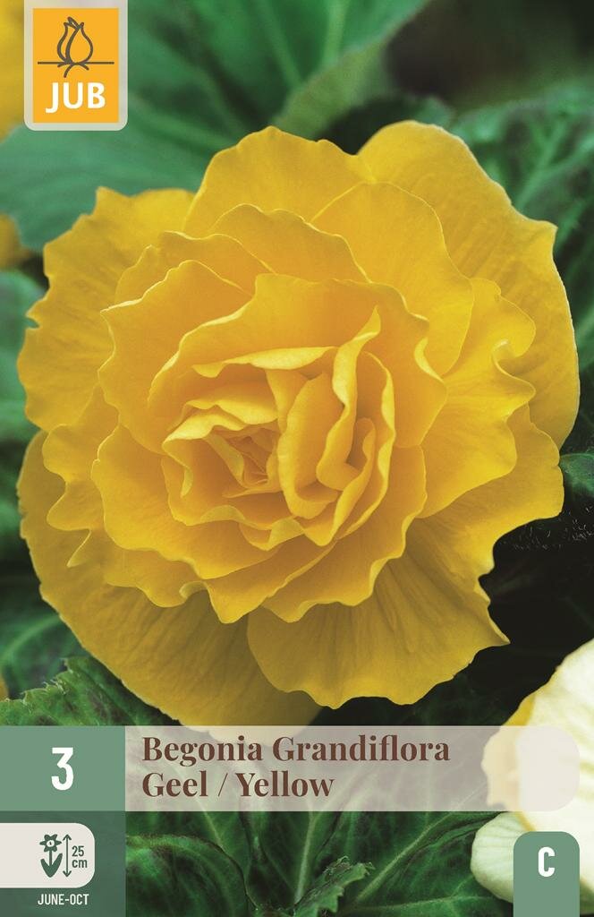 Begonia Grandiflora Geel: Stralende zomerbloei voor tuin en terras. Breng je tuin of terras tot leven met de prachtige Begonia Grandiflora geel. Deze opvallende zomerbloeier van het kwaliteitsmerk Jub staat bekend om zijn rijke bloei en levendige gele kleur. Met een hoogte van 25 cm is deze begonia perfect voor borders, bloembakken en hanging baskets. De knollen zijn eenvoudig te planten en beloven een spectaculaire bloei van juni tot en met oktober, waardoor je maandenlang kunt genieten van een kleurrijke tuin.