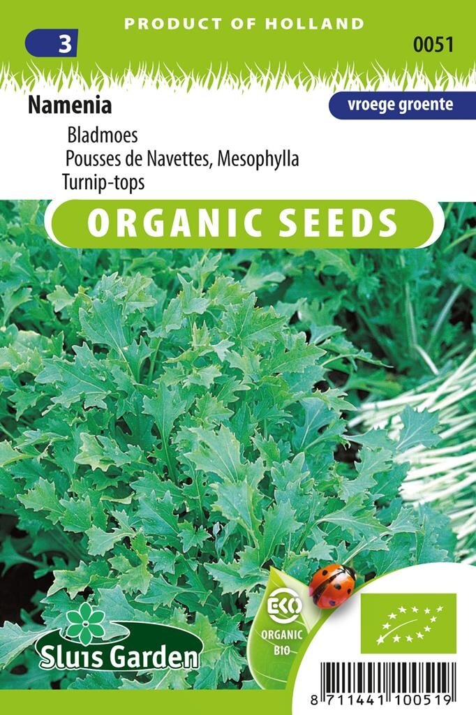 Bladmoes Namenia BIO zaden: Biologische smaakmaker voor je moestuin. Bladmoes Namenia BIO zaden van Sluis Garden zijn een heerlijke aanwinst voor je moestuin. Deze biologisch geteelde zaden leveren malse bladeren met een licht pittige smaak die zowel rauw als gekookt gebruikt kunnen worden. Bladmoes is eigenlijk een mix van jonge plantjes zoals meirapen, koolrapen en Chinese kool die dicht bij elkaar worden gezaaid, waardoor ze geen knollen ontwikkelen maar juist smakelijke jonge bladeren produceren.