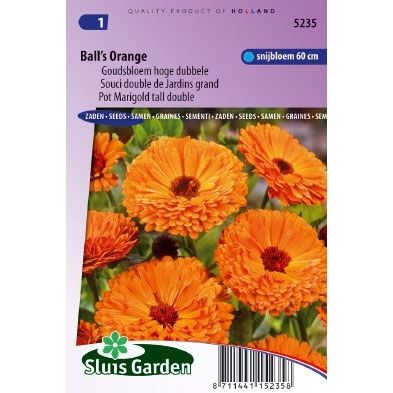 Calendula Officinalis zaden Balls Orange goudsbloem is een gemakkelijke snijbloem met diep oranje bloemen en fris groen, welriekend blad. Fijngehakte bloemblaadjes hebben een zoete, scherpe smaak en kunnen goed in salades gebruikt worden. In de volksgeneeskunde is de goudsbloem zeer bekend. Vraagt een zonnige plaats en normale tot droge grond. Zaaien onder glas of op zaaibed, verspenen en op definitieve plek planten.