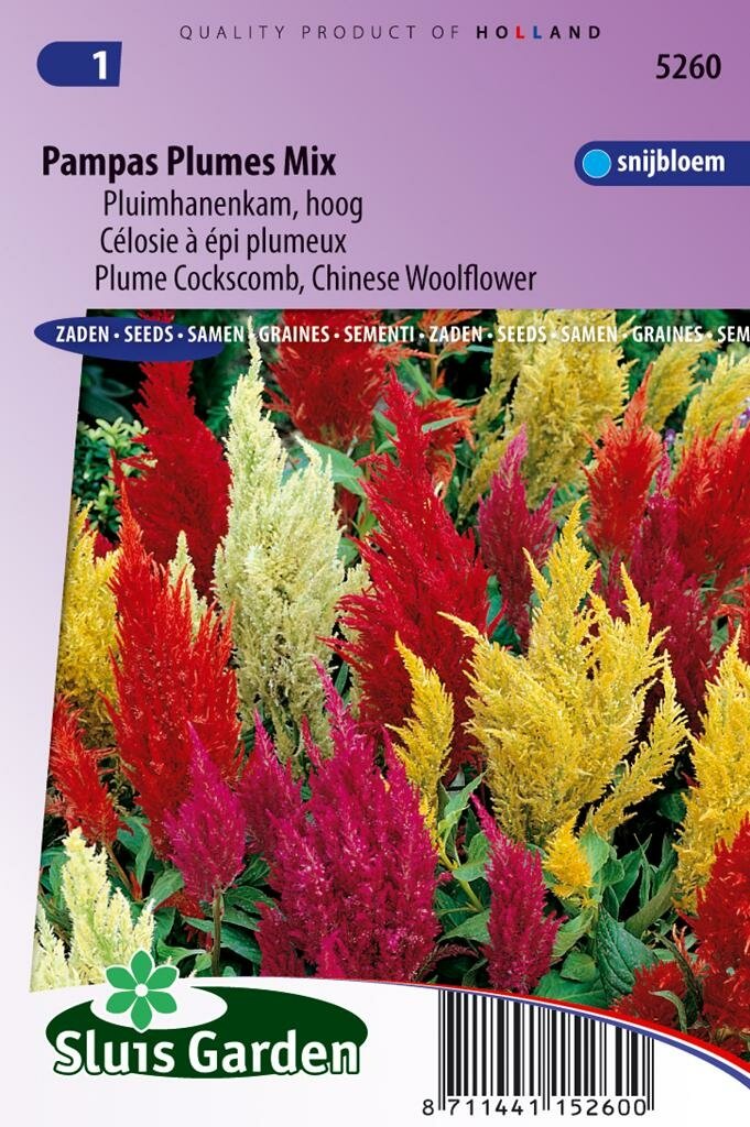 Celosia Argentea Plumosa 'Pampus Hanekam': Kleurrijke pracht voor je tuin. Celosia Argentea Plumosa 'Pampus Hanekam' is een opvallende eenjarige zomerbloeier die je tuin of balkon transformeert met zijn pluimvormige bloemen in levendige kleuren. Deze Sluis Garden variëteit staat bekend om zijn indrukwekkende, zachte pluimen die doen denken aan een hanenkam. Met een hoogte van ongeveer 70 cm is deze plant een echte blikvanger in borders, perkjes of als snijbloem in zomerse boeketten.