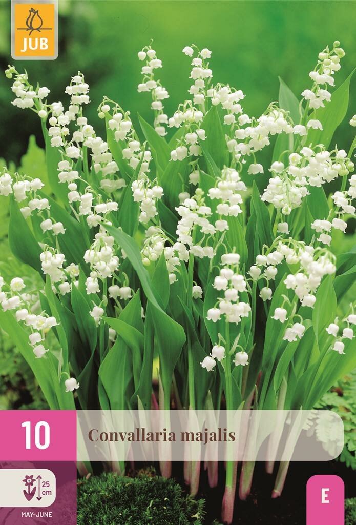 Convallaria majalis - Lelie van Dalen. De Convallaria majalis, ook bekend als Lelie van Dalen of lelietje-der-dalen, is een elegante bosplant die perfect gedijt in schaduwrijke tuinen. Deze JUB-bloembollen brengen in het voorjaar prachtige, geurige witte bloemetjes voort die fris afsteken tegen het glanzende groene blad. De plant verwildert op een beheerste manier, waardoor je jarenlang kunt genieten van deze klassieke tuinschoonheid zonder dat ze de tuin overneemt.