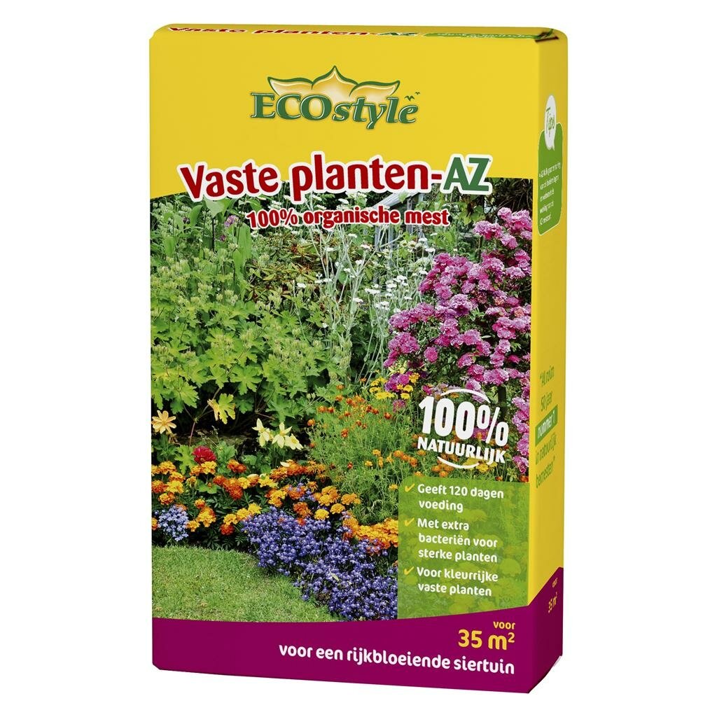 Ecostyle Vaste planten-AZ is een premium 100% natuurlijke meststof speciaal ontwikkeld voor vaste planten in je siertuin. Deze hoogwaardige voeding van Ecostyle zorgt voor sterke planten en kleurrijke bloemen dankzij de unieke samenstelling met bacteriën, schimmels en protozoa. Met deze organische meststof geef je je vaste planten precies wat ze nodig hebben voor een gezond bodemleven en een rijkbloeiende tuin.