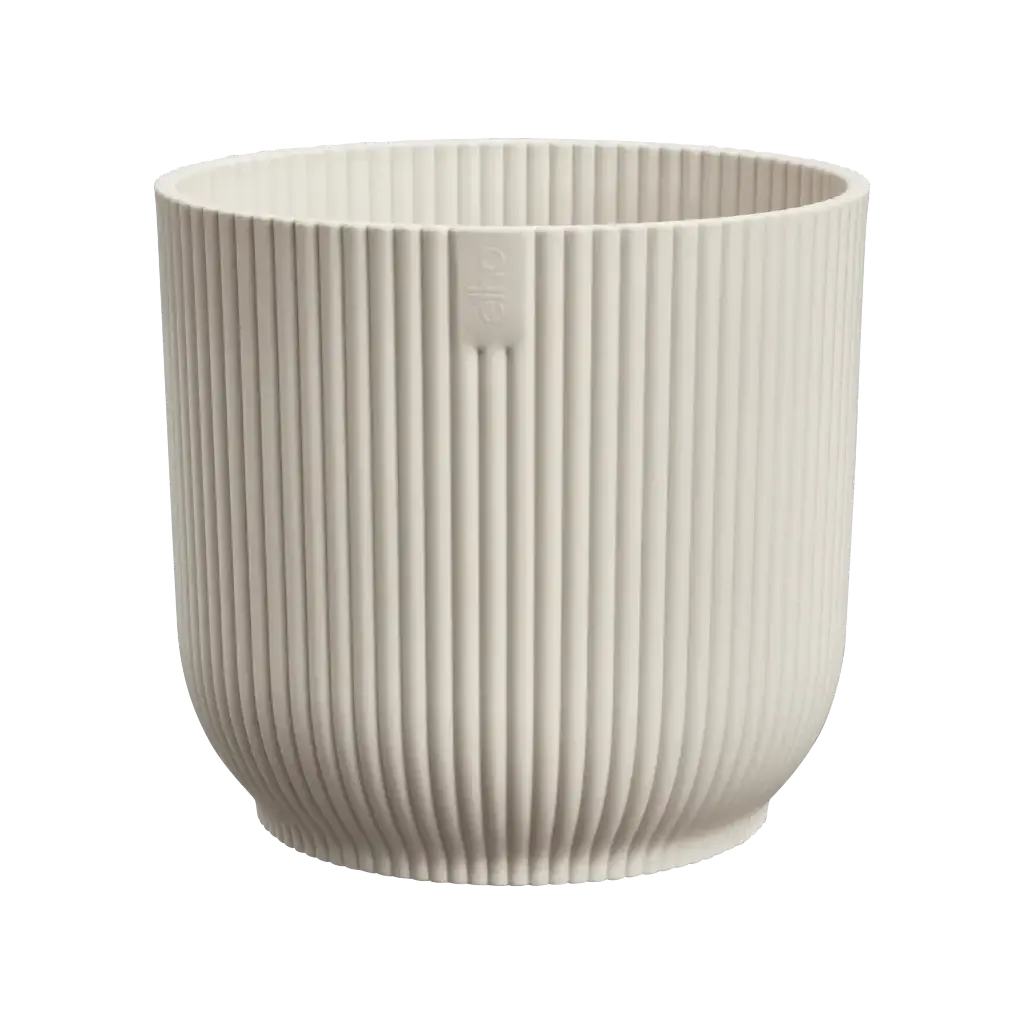 De Elho Vibes Fold is geproduceerd met eigen windenergie, wat bijdraagt aan een duurzamere wereld. De Vibes Fold Round heeft een modern decoratief patroon dat perfect past in een modieus en vriendelijk interieur. Door de licht afgeronde vorm en de linnen witte kleur komen je plantjes helemaal tot hun recht.