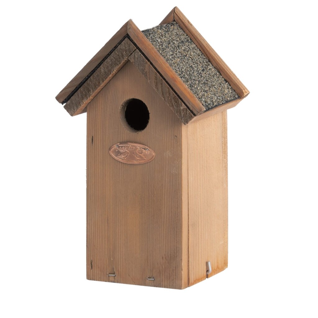 De natuurlijke houtafwerking zorgt ervoor dat de nestkast mooi opgaat in je tuinomgeving en een rustieke sfeer uitstraalt. Deze nestkast is volledig afgestemd op de specifieke eisen van de winterkoning, een van onze kleinste inheemse vogelsoorten.