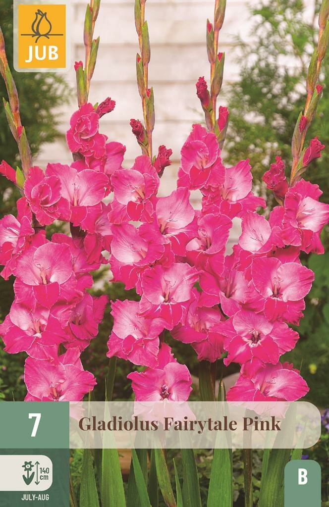 Gladiool Fairytale Pink: Elegante zomerbloeier voor je tuin. De Gladiool Fairytale Pink is een prachtige zomerbloeier die je tuin transformeert met haar elegante, roze bloemen. Deze imposante plant van het merk Jub wordt gemiddeld 140 cm hoog en vormt een opvallend element in borders of als snijbloem in zomerse boeketten. De zachte roze kleur geeft een romantische uitstraling aan je tuin en combineert mooi met andere zomerbloemen.