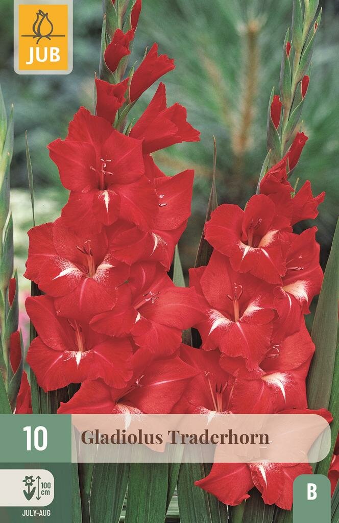 Gladiool Traderhorn: Spectaculaire zomerbloeier voor tuin en boeket. Maak kennis met de Gladiool Traderhorn, een indrukwekkende zomerbloeier van het merk Jub. Deze opvallende gladiool kenmerkt zich door zijn prachtige rode bloemen die op een stevige steel tot wel een meter hoog kunnen worden. De Traderhorn is niet alleen een blikvanger in je tuin, maar ook een populaire snijbloem voor zomerse boeketten.