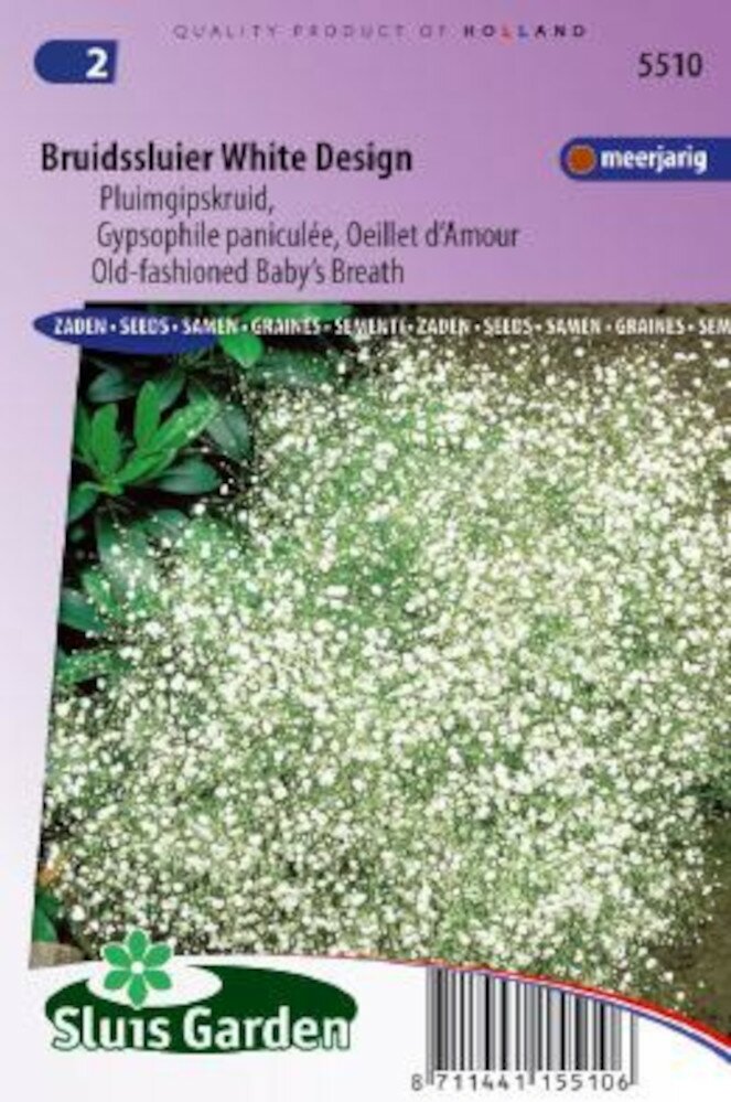 Bruidssluier (Gypsophila Paniculata) White Design: Elegante toevoeging aan je tuin. Gypsophila Paniculata zaden White Design bruidssluier is een prachtige vaste plant die bekend staat om zijn fijne, luchtige bloeiwijze. Deze variëteit van het gerenommeerde merk Sluis Garden brengt een wolk van kleine witte bloemetjes voort die je tuin een romantische uitstraling geven. De delicate stengels en het donkergroene blad vormen een perfect contrast met de talrijke witte bloemen, waardoor deze plant een sierlijke verschijning is in borders, rotstuinen of als snijbloem in boeketten.
