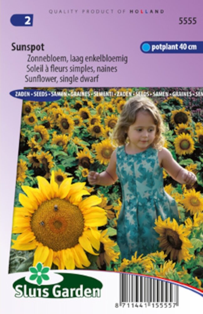 Helianthus Annuus Sunspot: De compacte zonnebloem voor elke tuin. Helianthus Annuus Sunspot zonnebloem is een bijzondere dwergvariant uit het assortiment van Sluis Garden. Deze compacte zonnebloem vormt indrukwekkende bloemen met een diameter tot wel 30 cm, terwijl de plant zelf slechts 40 cm hoog wordt. Perfect voor kleinere tuinen, potten of als blikvanger in borders.