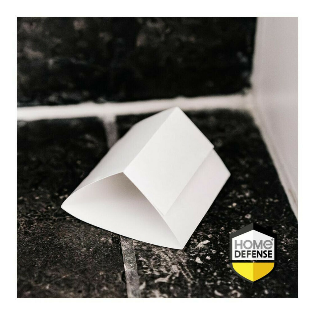 Het gebruik van de Home Defense zilvervisjes val is eenvoudig. Vouw de kaart langs de snijlijnen om de val te vormen. Verwijder de beschermlaag en vouw de val in een driehoek met de kleefzijde aan de binnenkant. Plak de bovenkant vast met het overstekende strookje. Plaats de val op een vlakke ondergrond waar zilvervisjes actief zijn, bij voorkeur in een hoek.