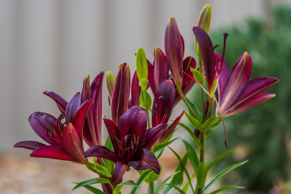- Intens donkerrode, bijna zwarte bloemen die een dramatisch contrast vormen met andere tuinplanten