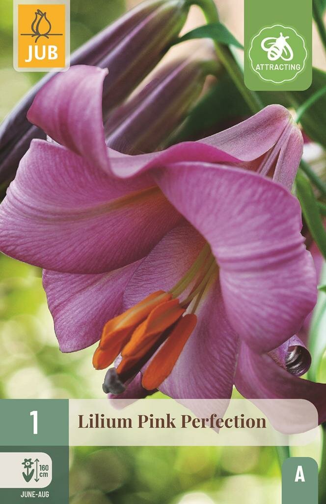 Lelie Pink Perfection: Een elegante roze schoonheid voor je tuin. Ontdek de prachtige Lelie Pink Perfection, een schitterende Aziatische lelie van het merk Jub die je tuin transformeert met haar opvallende roze bloemen. Deze elegante lelie behoort tot de klassieke Aziatische lelies, bekend om hun karakteristieke omgeslagen bloemblaadjes. Met een indrukwekkende hoogte van 90 cm vormt deze lelie een prachtig accent in borders, perken of grote plantenbakken.