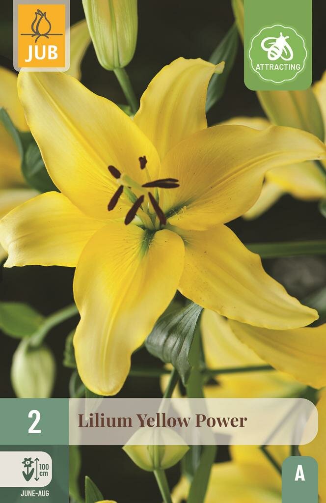Lelie Yellow Power: Stralende gele schoonheid voor je tuin. Breng een vleugje zonneschijn in je tuin met de Lelie Yellow Power. Deze prachtige Aziatische lelie van het kwaliteitsmerk Jub tovert je tuin om met zijn levendige gele bloemen die opvallen tussen het groen. Met een indrukwekkende hoogte van 100 cm vormt deze lelie een echte blikvanger in borders, plantenbakken of als snijbloem in een zomers boeket.