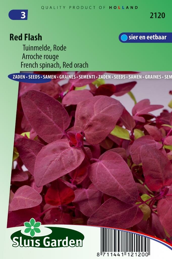 Melde Red Flash: Een sierlijke en smakelijke bladgroente. Melde Red Flash (Atriplex Hortensis) is een veelzijdige plant die zowel sierwaarde heeft als culinaire toepassingen. Deze inheemse plant, oorspronkelijk afkomstig uit Zuid-Europa en hier verwilderd, wordt door Sluis Garden aangeboden als een gemakkelijk op te kweken gewas. Het jonge, glimmende rode blad is niet alleen decoratief in je tuin, maar ook een smakelijke en mineraalrijke aanvulling op je maaltijden.