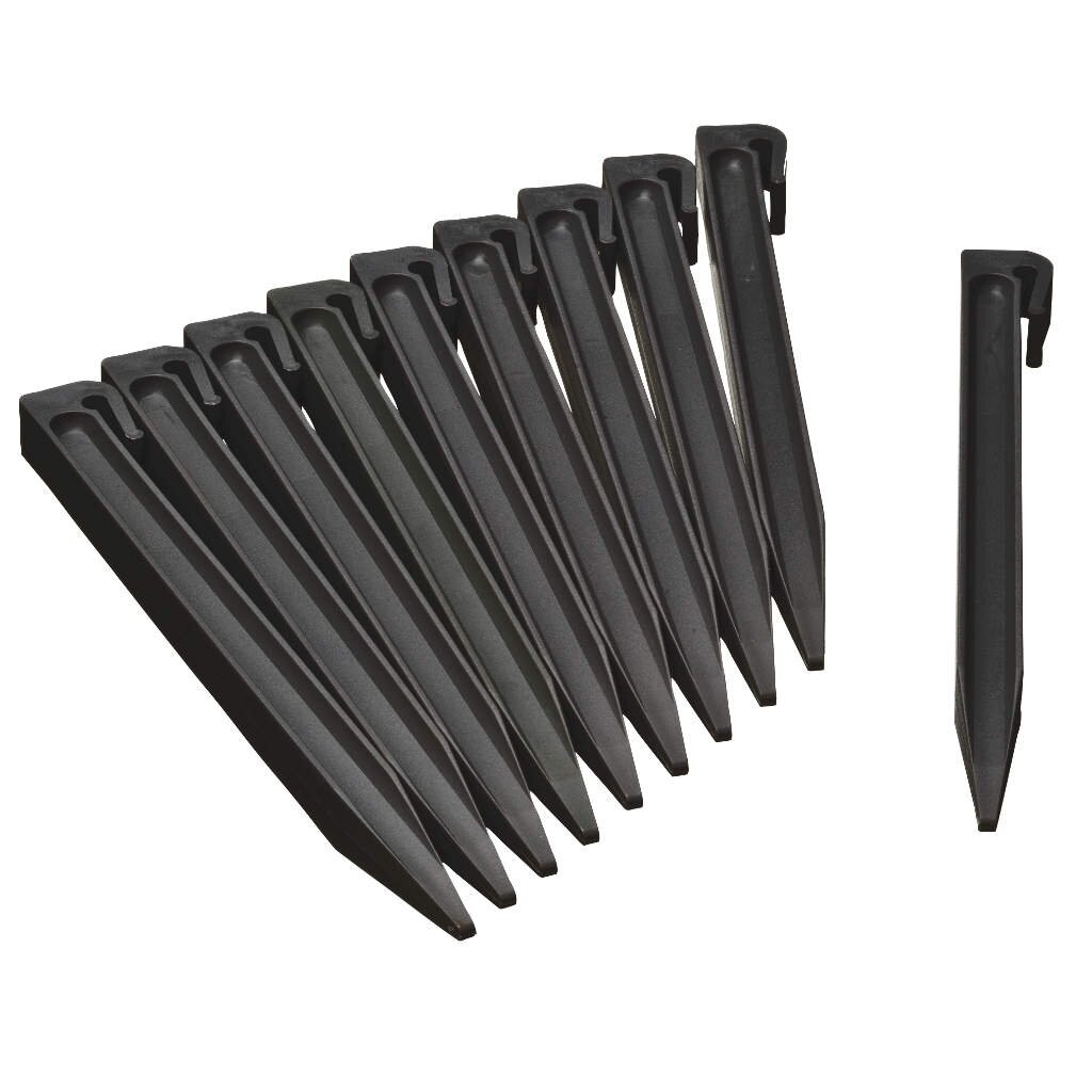 De Nature borderrand pennen zwart zijn speciaal ontworpen grondpennen van gerecycled polypropyleen voor het stevig verankeren van borderranden van 15 cm hoog. Deze duurzame pennen van het merk Nature zijn UV-behandeld voor een lange levensduur en kunnen eenvoudig worden vastgezet in de inkeping van je borderrand, waardoor je tuin er altijd netjes en verzorgd uitziet.