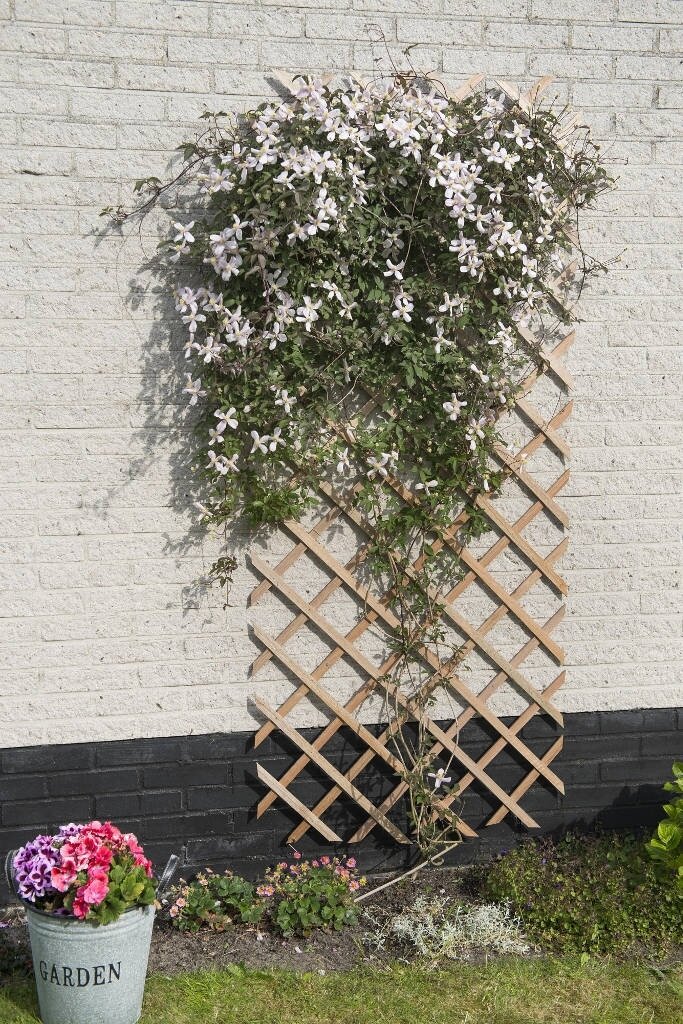 Je kunt dit veelzijdige klimrek op verschillende manieren gebruiken. Bevestig het aan een muur om een saaie gevel te transformeren tot een groene oase. Klimplanten zoals clematis, kamperfoelie of klimrozen groeien prachtig langs het rek en zorgen voor een weelderige begroeiing. Ook kun je het gebruiken om seizoensgebonden planten zoals erwten of bonen te ondersteunen in je moestuin. Het klimrek is eenvoudig te bevestigen met standaard schroeven. Door de aanpasbare breedte kun je het perfect laten aansluiten op de beschikbare ruimte. Plaats het klimrek op een zonnige plek voor optimale groei van je klimplanten.