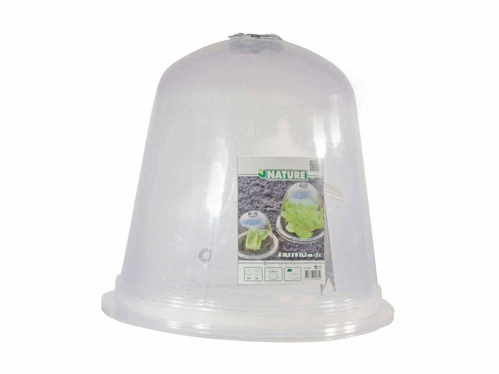 Nature kweekkap H 33,5 cm is een praktische oplossing voor het beschermen van je jonge planten tegen wisselende weersomstandigheden. Deze set van drie transparante kweekkappen van hard kunststof is speciaal ontworpen door Nature om je plantjes een optimale start te geven. Elke kap is voorzien van een handige ventilatieopening die oververhitting voorkomt, terwijl de drie verankeringspunten met bijgeleverde grondpennen zorgen voor stabiliteit, zelfs bij winderig weer.