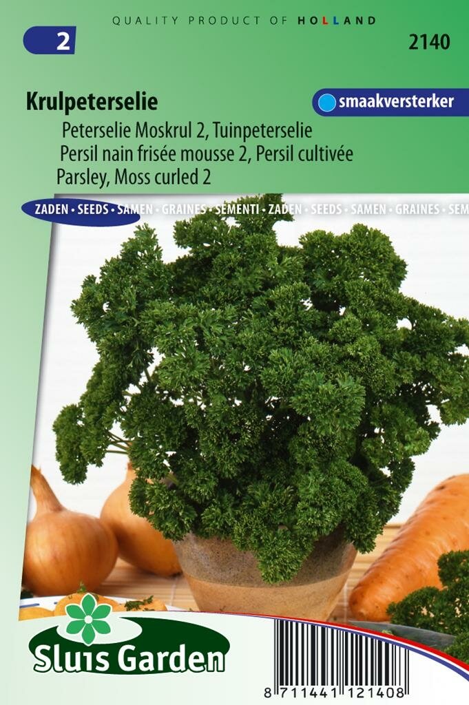 Moskrul 2 Krulpeterselie: Verfijnde smaak en decoratieve bladeren. Peterselie zaden Moskrul 2 Krulpeterselie van Sluis Garden is een veelzijdige kruidensoort die zowel als smaakversterker en als decoratieve garnering gebruikt wordt. Met zijn kenmerkende gekrulde bladeren en hartige smaak is deze peterselievariant een onmisbaar ingrediënt in de keuken. De Moskrul 2 is een van de meest populaire krulpeterseliesoorten vanwege zijn sterke groei en rijke aroma. Perfect voor gebruik in je eigen moestuin of in potten op je balkon of vensterbank.