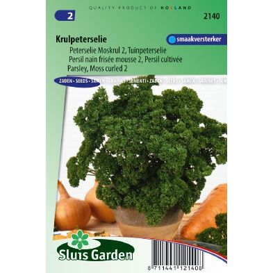 Peterselie zaden Moskrul 2 Krulpeterselie staat zowel als smaakversterker, en als schotelversiering bekend. Vergeet niet de "fines herbes", waarvan Krulpeterselie een bestanddeel is. De smaak van Peterselie is verfijnd en hartig. Kan het jaar rond, vers geoogst worden. Bij het oogsten van het blad, het hart van de plant niet wegsnijden, zodat er meerdere keren geoogst kan worden. Als de plant in de bloei schiet, verliest Peterselie veel van zijn smaak. Zaaien onder glas of in vollegrond op regels. Kiemt vaak langzaam. Grond na het zaaien vochtig en onkruidvrij houden. Uitstekend in potten, bakken etc.