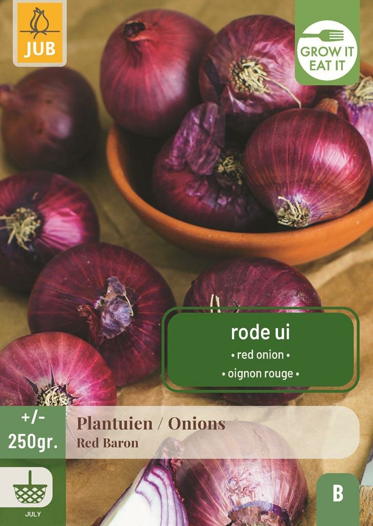 Plantenuien Red Baron: Smaakvolle rode uien voor je tuin. Ontdek de Plantenuien Red Baron van het kwaliteitsmerk Jub, een uitstekende keuze voor elke moestuin. Deze rode plantui staat bekend om zijn karakteristieke smaak en prachtige dieprode kleur. Met een ruime hoeveelheid van 250 gram en een bolmaat van 14/21 heb je voldoende plantmateriaal voor een rijke oogst van smaakvolle uien die je keuken zullen verrijken.