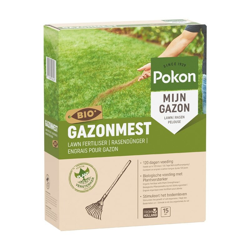 Pokon Bio Gazonmest: Natuurlijke voeding voor een sterk en gezond gazon. Pokon Bio Gazonmest voor 15 m² is een hoogwaardige meststof die speciaal ontwikkeld is voor een gezond en sterk gazon. Deze gazonmest van het vertrouwde merk Pokon bevat een uitgebalanceerde mix van essentiële voedingsstoffen die diep in het gazon zakken en direct door de graswortels worden opgenomen, wat resulteert in een prachtig groen en veerkrachtig gazon.