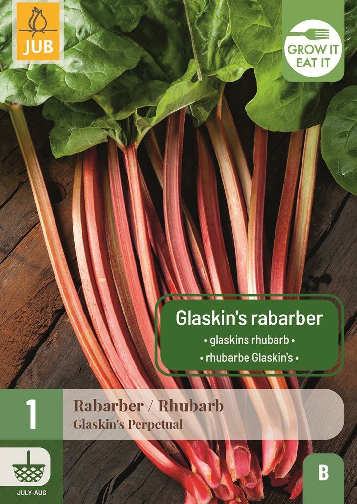 Rabarber Glaskins Perpetual: Smaakvolle oogst voor je tuin. Ontdek de Rabarber Glaskins Perpetual, een veelzijdige rabarbersoort van het kwaliteitsmerk Jub die bekend staat om zijn uitstekende smaak en lange oogstperiode. Deze robuuste plant produceert stevige, sappige stelen met een perfecte balans tussen zoet en zuur, ideaal voor zowel zoete als hartige gerechten. De Glaskins Perpetual is een betrouwbare keuze voor zowel beginnende als ervaren tuiniers die willen genieten van hun eigen verse rabarberoogst.