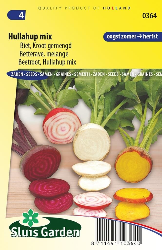Kleurrijke Rode Biet Hullahup Mix: Een feest in je moestuin. Rode biet Hullahup Mix van Sluis Garden is een prachtig samengesteld mengsel van verschillende bietensoorten dat je moestuin een kleurrijke boost geeft. Deze mix bestaat uit vier bijzondere variëteiten: Burpees Golden, Blancoma, Chioggia en Rode Kogel. Hiermee creëer je niet alleen een visueel spektakel in je tuin, maar geniet je ook van verschillende smaken en texturen op je bord.