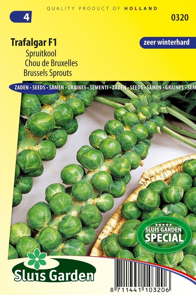 Spruitkool Trafalgar F1: De kindvriendelijke spruitjes voor je moestuin. Spruitkool Trafalgar F1 is een van de meest kindvriendelijke spruitjessoorten die je kunt kweken. Deze middelgrote spruiten van Sluis Garden hebben een zachte, zoete smaak die toch voldoende 'spruitkarakter' heeft om niet flauw te worden. De perfecte keuze voor wie de hele familie wil laten genieten van deze gezonde wintergroente.