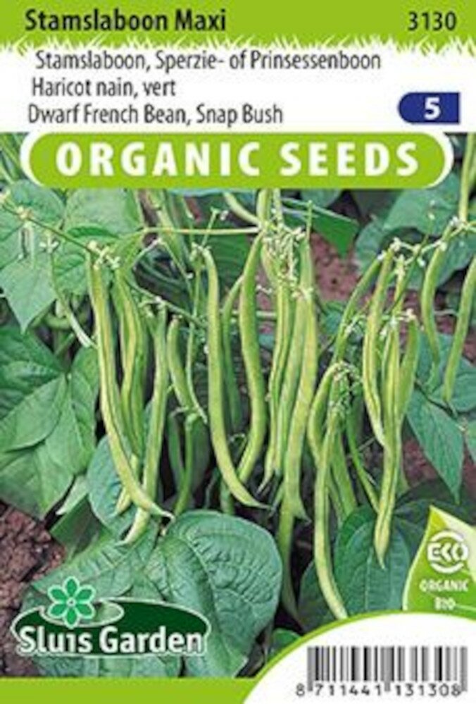 Biologische stamslaboon Maxi: vroeg oogstbare en productieve boon voor je moestuin. Stamslaboon Maxi BIO is een hoogwaardige biologisch geteelde boon van het merk Sluis Garden. Deze tuinderskwaliteit boon kenmerkt zich door zijn vroege oogstbaarheid en hoge productiviteit. De ca. 20 cm lange fijne peulen hangen boven de bladeren, waardoor ze eenvoudig te plukken zijn en goed bestand tegen slechte weersomstandigheden. De koffiekleurige zaden zijn bovendien beter bestand tegen minder gunstige groeiomstandigheden.