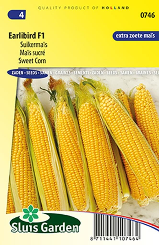 Suikermais Earlybird F1: Vroege, extra zoete maïs voor jouw moestuin. Suikermais Earlybird F1 is een compacte, vroegrijpende maïssoort van het merk Sluis Garden die perfect is voor de Nederlandse moestuin. Met een beperkte hoogte van slechts 100-125 cm is deze maïsvariant minder gevoelig voor wind dan traditionele soorten. Deze extra zoete maïs is zowel rauw als gekookt te gebruiken en presteert goed in wat koudere weersomstandigheden, wat hem ideaal maakt voor ons klimaat.