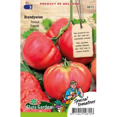 Tomaat zaden Brandywine stamt al uit 1885 en staat wereldwijd bekend als een van de allerlekkerste tomaten. Deze tomaten plant geeft ca. 300-400 gram grote vleestomaten met een aparte rozerode kleur. Oogsten als de tomaten oranjegroen van kleur zijn en dan na laten rijpen. Heerlijk! Buitenteelt is mogelijk indien op zonnige, windstille plek. Tijdig blad plukken en dieven om ziekten te voorkomen.