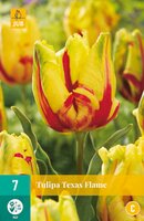 Tulp Texas Flame: Een Spectaculaire Parkiettulp voor je Tuin. Ontdek de adembenemende Tulp Texas Flame van het merk Jub, een bijzondere parkiettulp die je tuin in het voorjaar transformeert tot een kleurrijk schouwspel. Deze opvallende tulpensoort, ook wel papegaaitulp genoemd, kenmerkt zich door zijn prachtige gefranjerde bloembladen in een spectaculaire combinatie van geel en rood. Met 7 hoogwaardige bloembollen in één verpakking creëer je moeiteloos een opvallend accent in borders, potten of als snijbloem.