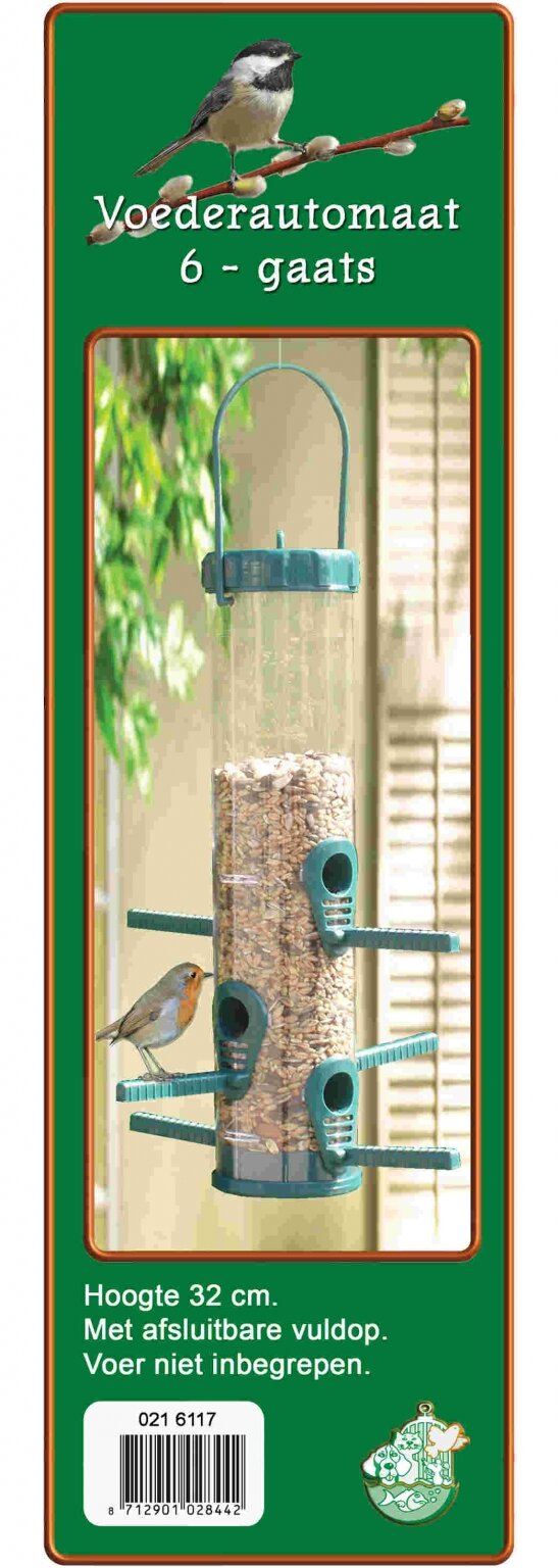 Wil je meer leven in je tuin brengen? Bestel dan nu de vogelvoeder automaat 6 gaats en geniet van de vrolijke bedrijvigheid van tuinvogels. Je kunt de automaat eenvoudig online bestellen of bezoek een van de vestigingen van Tuincentrum de Oosteinde voor persoonlijk advies. Onze medewerkers helpen je graag bij het kiezen van de juiste voederautomaat en bijpassend vogelvoer. Bekijk ook onze vestigingen voor de dichtstbijzijnde winkel en openingstijden.